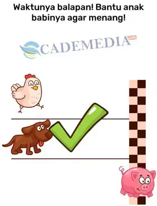 Klik dan tahan pada ayam dan anjing menggunakan dua jari lalu klik tombol 'mulai' agar anak babi bisa melaju lebih dulu ke garis finish dan menang.